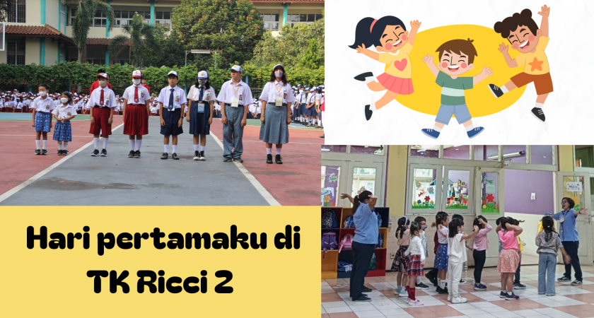 Hari pertama sekolah di TK Ricci menjadi moment yang membahagiakan dan juga sekaligus mendebarkan, sehingga hampir semua siswa diantar dan didampingi oleh kedua orang tuanya saat datang dan mengikuti kegiatan di hari pertama ini. Ada yang sudah berani, namun ada juga yang belum berani sehingga masih perlu didampingi. Di gerbang TK dan di kelas-kelas seluruh guru KB dan TK Ricci 2 pun sudah siap menyambut kedatangan anak-anak hebat dengan segala kegiatan yang menyenangkan sehingga semua anak-anak dapat mengikuti kegiatan belajar di Tk Ricci dengan gembira.