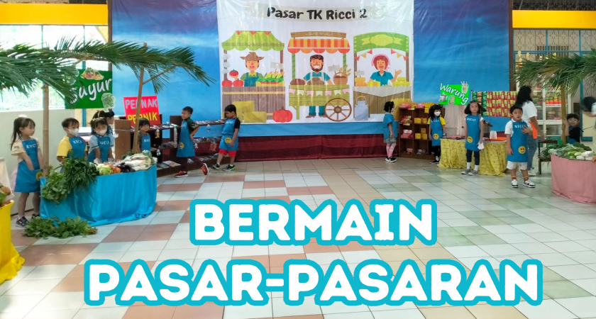 Sebagai puncak dari kegiatan dikelas dalam tema makanan dan minuman sehat, maka TK Ricci 2 mengadakan kegiatan Pasar-pasaran yang dilaksanakan pada hari Jumat, 17 Mei 2024. Bertempat di Aula TK Ricci 2 yang sudah disulap/ disiapkan guru dan karyawan TK menjadi suasana pasar tradisional dengan nama ‘Pasar TK Ricci 2” yang menyajikan beberapa jenis sayuran, buah-buahan, snack dan pernak-pernik untuk dijual.